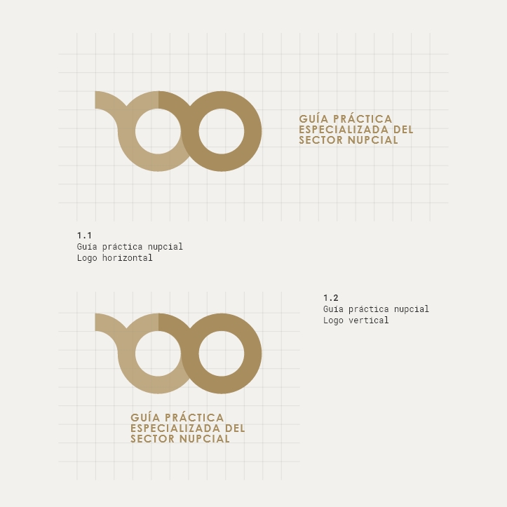 Guía Nupcial es una marca creada en 2014 que se centra en seleccionar proveedores relacionados con el sector nupcial en España. El logo son dos círculos continuos. Inspirado en los unión y la búsqueda. El diseño se ha desarrollado a partir de diferentes bocetos hechos a mano.